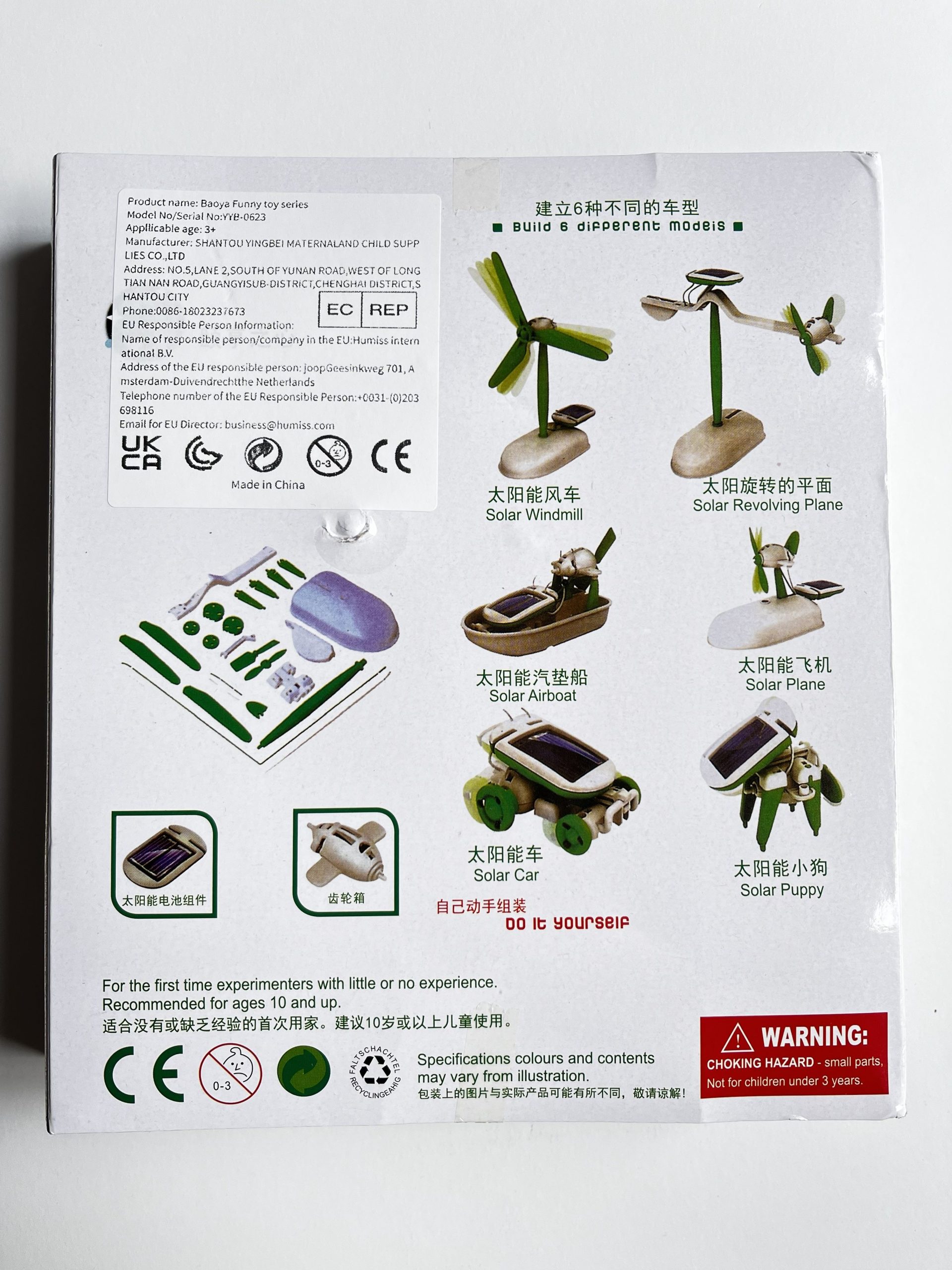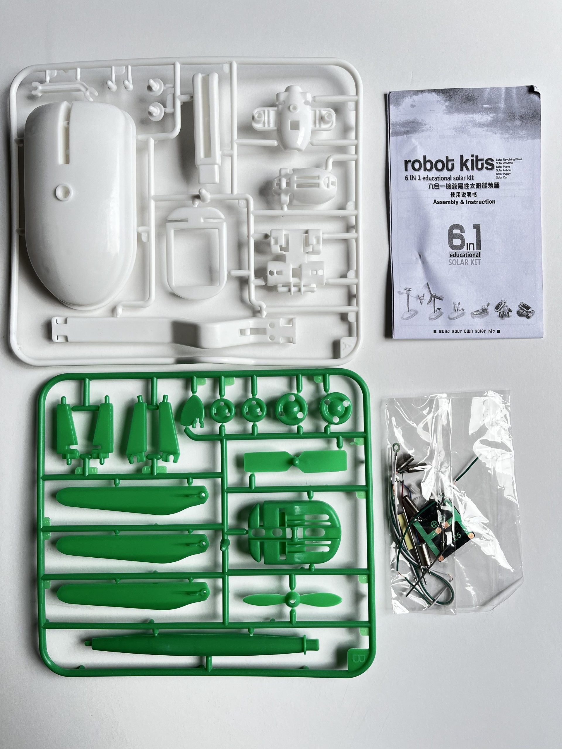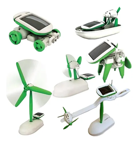 Este es un juguete que ayuda a desarrollar las habilidades mentales y motrices de los niños, no requiere soldadura ni herramientas especiales, es divertido y muy fácil de armar. Todos los proyectos funcionan con un pequeño motor que es impulsado por energía solar recopilada por un panel fotovoltaico, por lo que no necesita pilas.